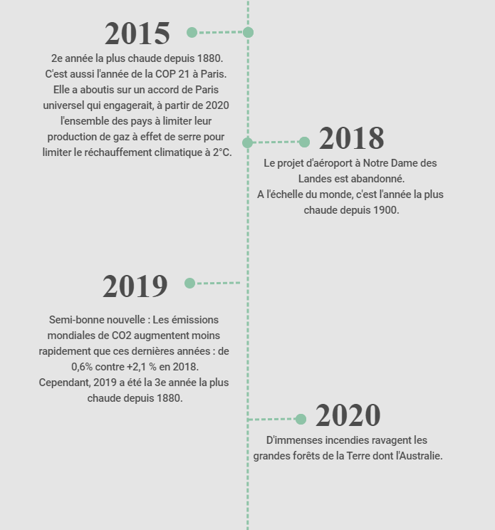 2020. Nous entrons dans une nouvelle année, une nouvelle décennie et, pourquoi pas, une nouvelle ère de changement climatique. En France les années 2010 ont été marquées par une grande prise de conscience de l’urgence climatique qui pèse sur le monde depuis la seconde moitié du XXe siècle.