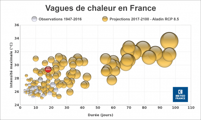 Les objectifs ont été repoussés à 2050 et les inquiétudes pour le climat de la fin du siècle se précisent. Selon une modélisation de chercheurs français, Les températures maximales vers 2100 devraient atteindre les 50°C. C’est à dire accroître de 8°C environ par rapport aux températures actuelles. Une autre étude de 2017 indique que d’ici à 2100, deux Européens sur 3 seraient touchés par des catastrophes climatiques. 152 000 personnes par an devraient mourir à cause de ces catastrophes à la fin du siècle.