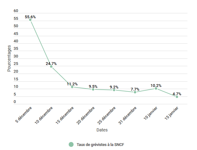 Les agents de la SNCF entraient massivement en grève contre la réforme des retraites le 5 décembre dernier. Cette forte mobilisation laissait présager un blocage sur le long terme. Au 42e jour du mouvement, le taux de gréviste n’atteint pas la barre des 5 %.