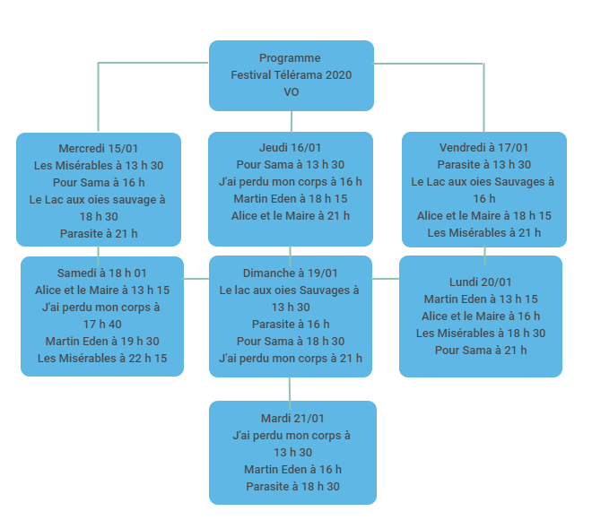 On a le film “Parasite”, primé au Festival de Cannes 2019. On a repris “Alice et le maire”, “le Lac aux Oies Sauvage”, un thriller chinois, mais aussi “Les Misérables” et “Pour Sama”. Ce sont les films que nous n’avons pas diffusés au Cinéma étoile». Des films d’animation seront aussi au programme comme “J’ai perdu mon corps” ou encore “La fameuse Invasion des ourses en Sicile”. La sélection des films du festival Télérama : « C’est principalement la notation du magazine Télérama qui détermine la présence du film ou pas » affirme Jules Amossé.
